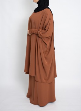 Edles Khimar-Set in Honigbraun mit fließender Passform. Khimar zum Binden und weiter Rock für einen eleganten, femininen Look – ideal für Alltag und Gebet.