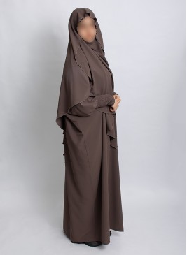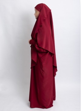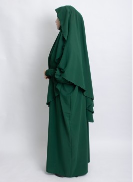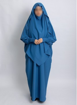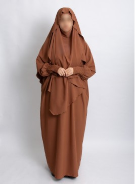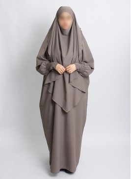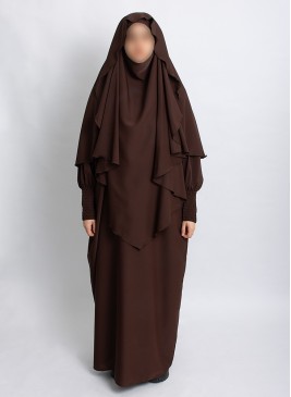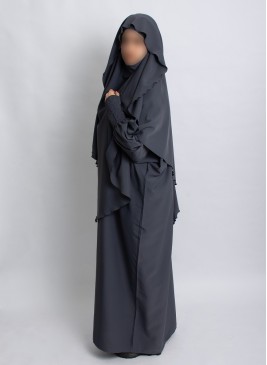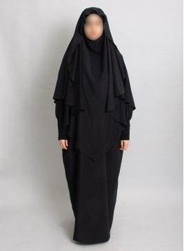 Elegantes 2-teiliges Khimar-Set mit glatter Oberfläche, zusätzlicher Bedeckung im Stirn- und oberen Gesichtsbereich – flexibel tragbar und blickdicht.