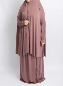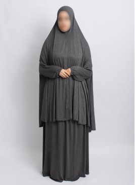 Zweiteilige Gebetskleidung zum Überziehen aus weichem Jersey-Stoff. Blickdicht, dehnbar und fließend – ideal für das Gebet zu Hause oder in der Moschee.