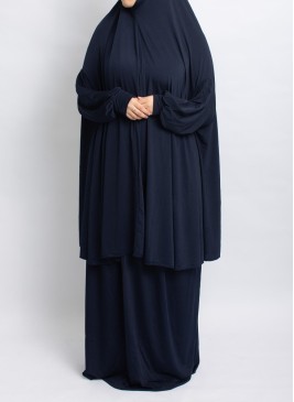 Zweiteilige Gebetskleidung zum Überziehen aus weichem Stoff mit Lycra-Effekt. Blickdicht, fließend und ideal für das Gebet zu Hause oder in der Moschee.